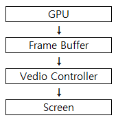 GPU는 비디오 메모리에 존재하는 프레임 버퍼에 위와 같이 계속해서 이미지를 지우고 그리는 과정을 반복한다.