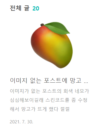 스킨코드를 좀 수정해서 망고가 뜨게 했다