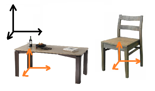 의자를 예로 들자면 의자는 스스로의 local coordinates을 가지고 있다.