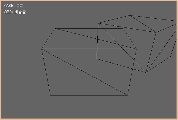 두 박스를 AABB로 충돌시킬 경우에는 다음처럼 눈에 보기엔 충돌하지 않았는데도 충돌함